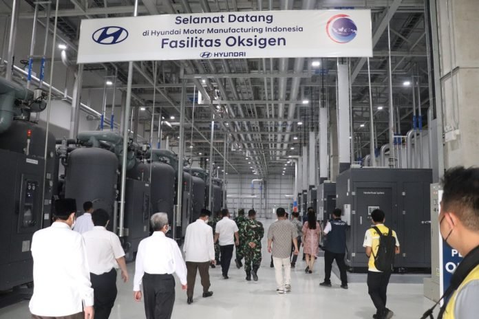 Fasilitas sistem kerja pengisian oksigen medis yang sebelumnya, di paparkan oleh salah satu staf PT.Hyundai MMI kepada Danrem 051/Wkt dan Pj.Bupati Kabupaten Bekasi. Selama kegiatan berlangsung aman dan lancar.