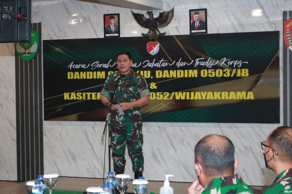 ACTUALNEWS.ID, Kodam Jaya, Tangerang – Komandan Korem 052/Wijayakrama Brigjen TNI Rano Tilaar memimpin Uparara Serah Terima Jabatan Dandim 0502/Jakarta Utara, Dandim 0503/Jakarta Barat dan Kasiter Kasrem 052/WKR bertempat di Aula Sudirman Lt 4 Makorem 052/WKR, Jl. Boulevard Diponegoro, Bencongan Tangerang Banten, Senin (24/1/2022).