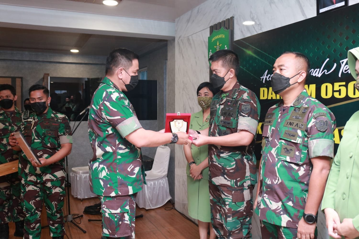 ACTUALNEWS.ID, Kodam Jaya, Tangerang – Komandan Korem 052/Wijayakrama Brigjen TNI Rano Tilaar memimpin Uparara Serah Terima Jabatan Dandim 0502/Jakarta Utara, Dandim 0503/Jakarta Barat dan Kasiter Kasrem 052/WKR bertempat di Aula Sudirman Lt 4 Makorem 052/WKR, Jl. Boulevard Diponegoro, Bencongan Tangerang Banten, Senin (24/1/2022).