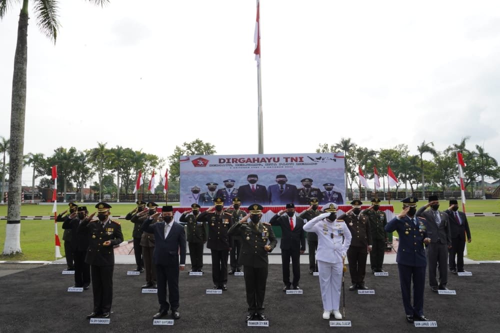 Upacara peringatan kali ini berbeda dengan dua tahun sebelumnya karena harus digelar secara virtual sebagai upaya pencegahan pandemi virus corona (Covid-19), Upacara Hari Ulang Tahun TNI ke-75 untuk wilayah Banyumas dipusatkan di Makorem 071/Wijayakusuma, Sokaraja, Banyumas. Selasa (5/10/2021).