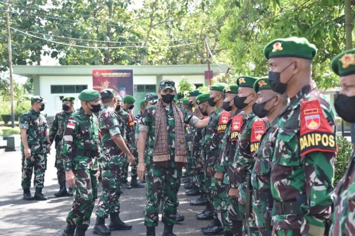 ACTUALNEWS.ID, Banyumas – Komandan Korem 071/Wijayakusuma Kolonel Inf Yudha Airlangga, S.E., dampingi Asops Panglima TNI Mayjen TNI Syafruddin, S.E., M.M., M. Tr (Han), melaksanakan pemeriksaan Kesiapan Operasi (Riksiapops) Yonif 405/Surya Kusuma dalam rangka Pengamanan Obyek Vital Nasional PT. Freeport Indonesia Papua, Selasa (17/5/2022) di Makoyonif 405/Suryakusuma, Wangon, Banyumas.