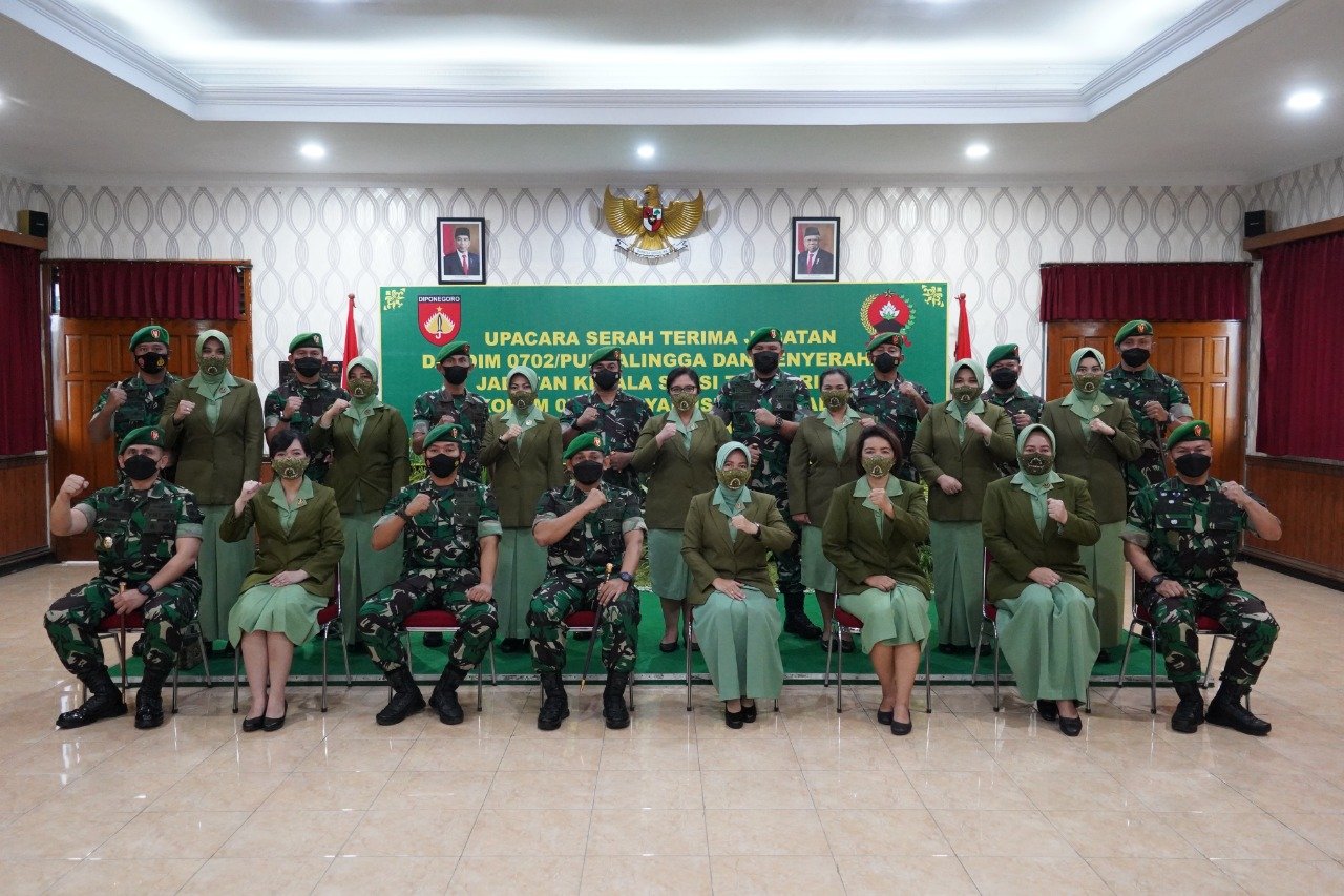 Serah Terima Jabatan Dandim 0702/Purbalingga dan Penyerahan Jabatan Kasiterrem 071/Wijayakusuma dilaksanakan dengan tetap menerapkan Protokol Kesehatan dimasa pandemi Covid-19, dihadiri Ws. Kasrem 071/Wijayakusuma, para Dandim sejajaran Korem 071/Wijayakusuma, para Kasirem 071/Wijayakusuma, Ketua Persit Kartika Chandra Kirana Koorcab Rem 071 PD IV/Diponegoro dan Ws.Wakil Ketua Persit Kartika Chandra Kirana Koorcab Rem 071 PD IV/Diponegoro, para Ketua Cabang Persit Kartika Chandra Kirana sejajaran Persit Kartika Chandra Kirana Koorcab Rem 071 PD IV/Diponegoro.