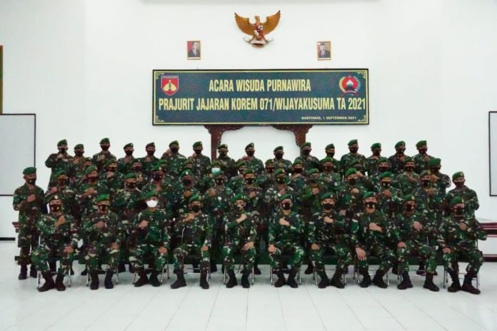 ACTUALNEWS.ID, Banyumas – Komandan Korem 071/Wijayakusuma Kolonel Inf Dwi Lagan Safrudin, S.I.P., memimpin wisuda purnawira prajurit Korem 071/Wijayakusuma, Rabu (1/9/2021) di Gedung Pertemuan A. Yani Makorem 071/Wijayakusuma, Sokaraja, Banyumas.