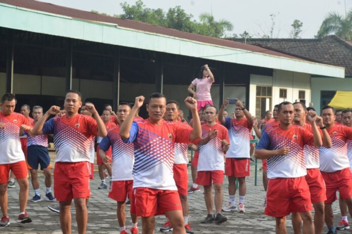 ACTUALNEWS.ID, Banyumas – Junjung tinggi rasa kebersamaan dan kuatkan soliditas satuan Korem 071/Wijayakusuma, Danrem 071/Wijayakusuma bersama segenap prajurit dan PNS Makorem 071/Wijayakusuma senam aerobik bersama, Rabu (22/6/2022) di Lapangan Apel Makorem 071/Wijayakusuma, Sokaraja, Banyumas.