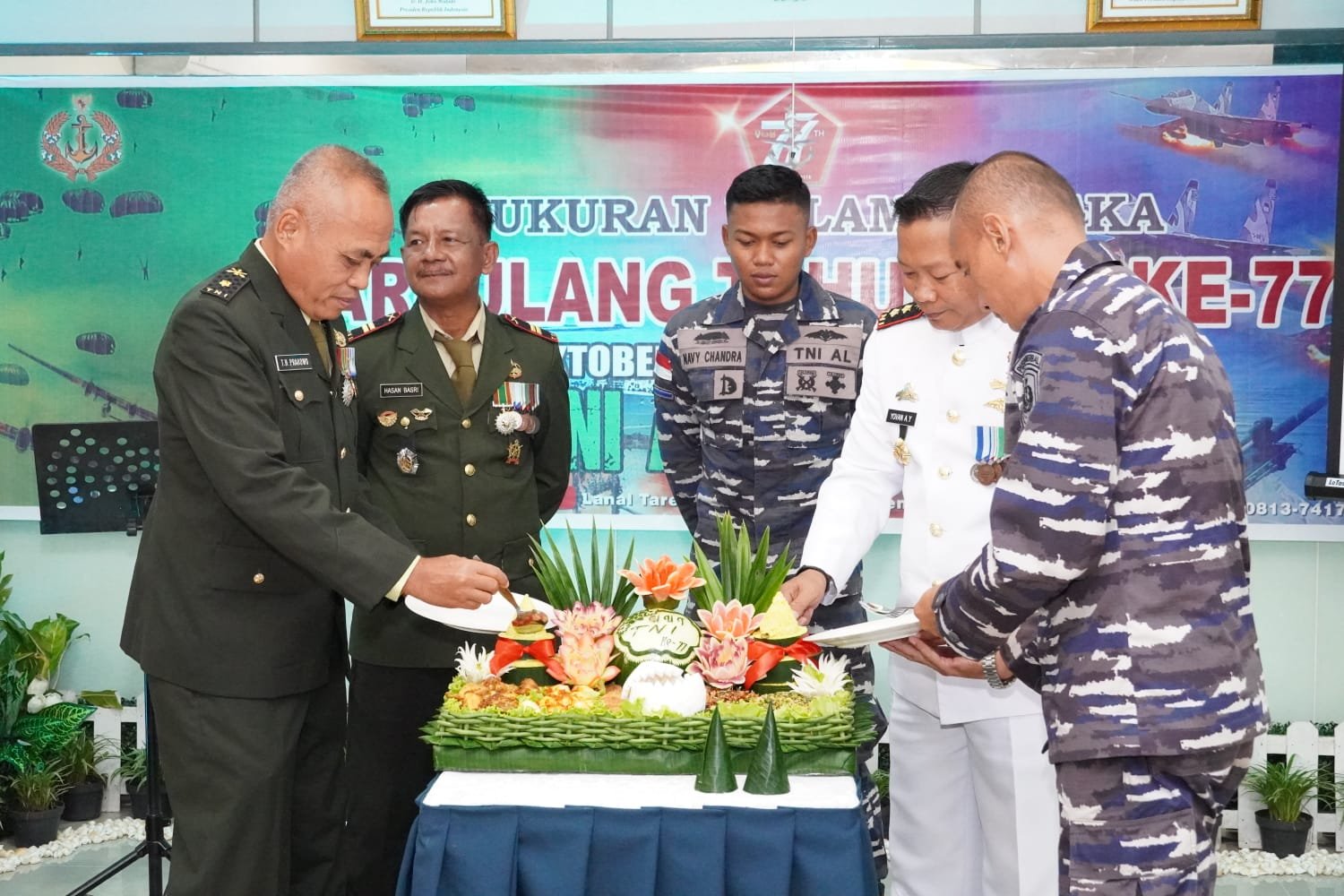 “HUT TNI ke-77 ini merupakan Hari Ulang Tahun Satuan TNI yang ada di Kepulauan Anambas diantaranya Lanal Tarempa, Lanudal Matak dan Koramil jajaran Kodim 0318/Natuna. Terima kasih atas support, dukungan dan kepercayaan masyarakat dan pemerintah daerah terhadap institusi TNI khususnya di wilayah Kepulauan Anambas. Seperti yang disampaikan Panglima TNI Jenderal TNI Andhika Perkasa dalam amanatnya bahwa saat ini citra TNI sangat baik dimata masyarakat sehingga perlu dipertahankan dan senantiasa menjaga kepercayaan masyarakat kepada TNI. Dirgahayu TNI ke-77, TNI Adalah Kita”, kata Danlanal Tarempa.