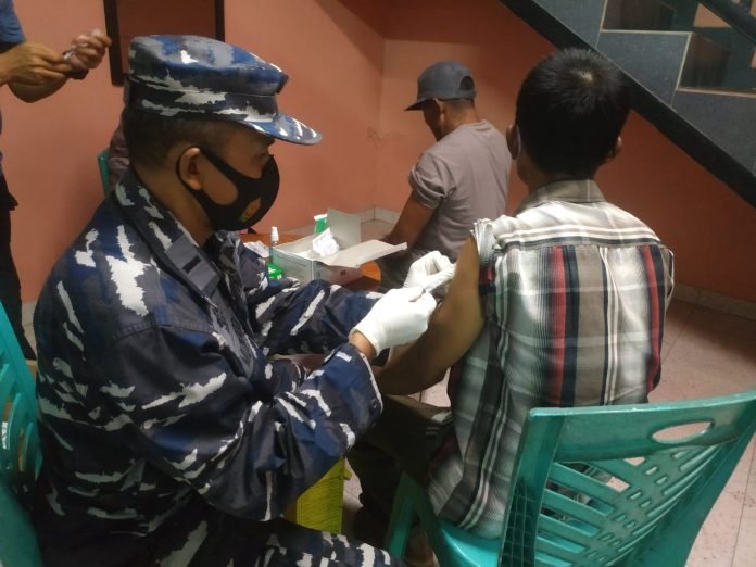 ACTUALNEWS.ID, Babel – Dalam rangka percepatan pencapaian target vaksinasi, Pangkalan TNI Angkatan Laut Bangka Belitung melalui Balai kesehatan bekerja sama dengan Dinas kesehatan Kabupaten Bangka, Puskesmas Belinyu dan Polsek Belinyu kembali menggelar serbuan vaksin siang dan malam kepada masyarakat maritim dosis pertama dan kedua, malam kali ini pelaksanaan hari ketiga bertempat di fasilitas umum tepatnya di Gedung Karaoke Puncak Mall, Kecamatan Belinyu, Kabuoaten Bangka, (25/12/2021).