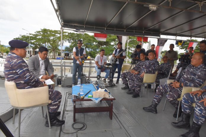 ACTUALNEWS.ID, TNI AL, Lantamal I Belawan, 16 November 2022,– Komandan Lantamal (Danlantamal) I Belawan Laksamana Pertama TNI Johanes Djanarko Wibowo melaksanakan dialog khusus dengan TVRI Sumatera Utara di Buritan KAL Viper I-1-63, Selasa (15/11/2022).