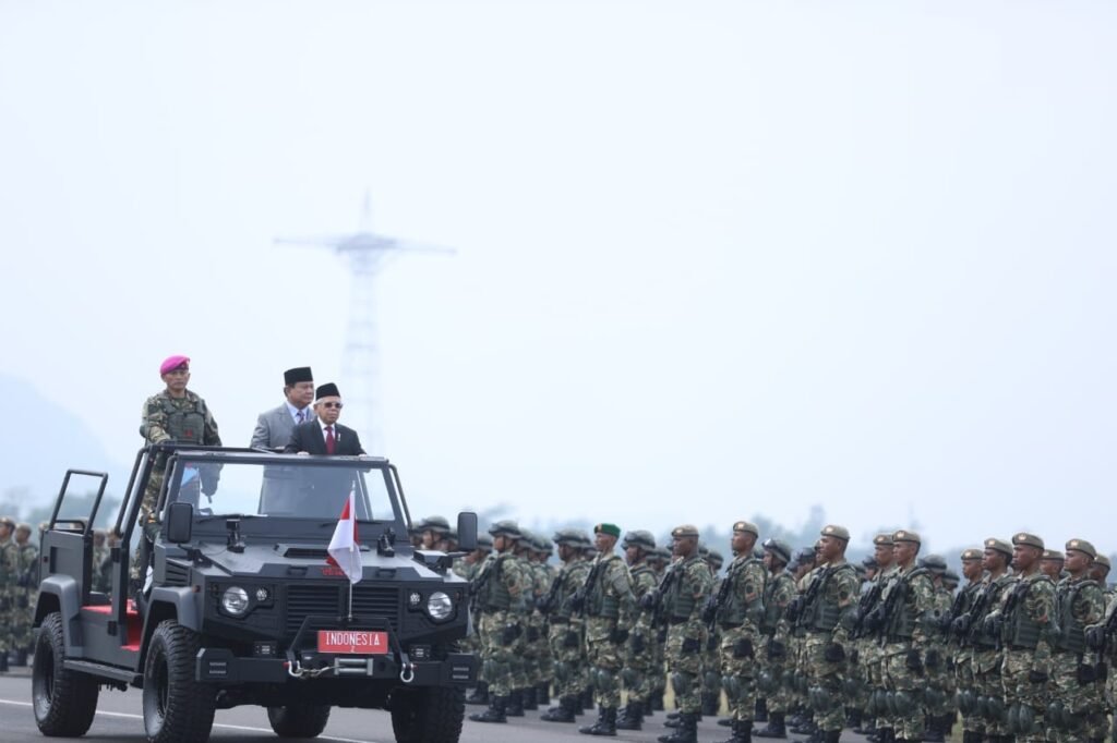 Usai pelaksanaan upacara, Kasad bersama Menhan RI, Kasal dan Kasau juga mendampingi Wapres RI menyaksikan defile, demonstrasi dan pameran industri pertahanan dalam negeri yang memamerkan produk-produk anak bangsa yang digunakan oleh TNI-Polri, serta komponen cadangan. (Dispenad)