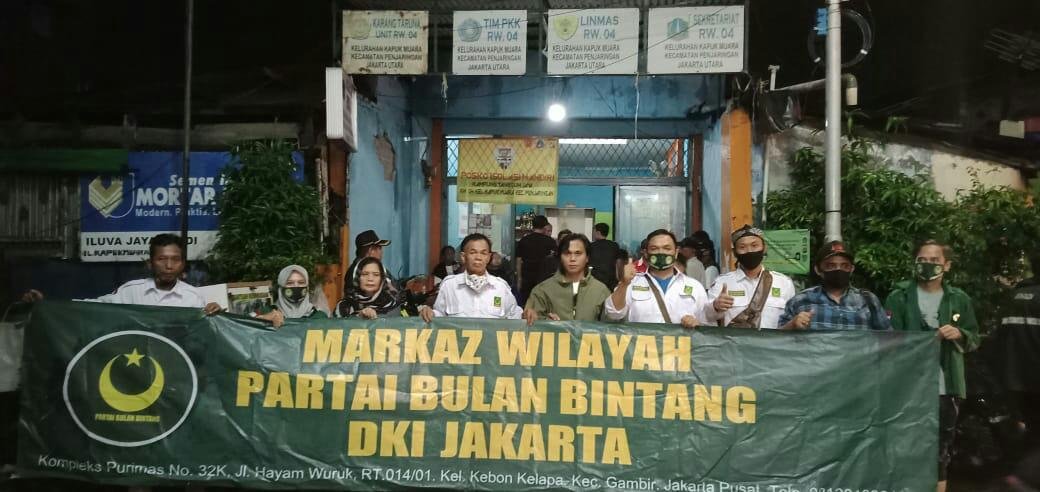 Ardi beserta rombongan pengurus PBB DPW DKI Jakarta menyerahkan bantuan langsung dan diterima Mulyana selaku ketua Rt.11 Rw.04 Rawa Elok. Pemberian bantuan tersebut disaksikan oleh ketua komunitas Kapuk Muara Edo yang akrab dipanggil bang Edo dikalangan masyarakat Kapuk Muara.