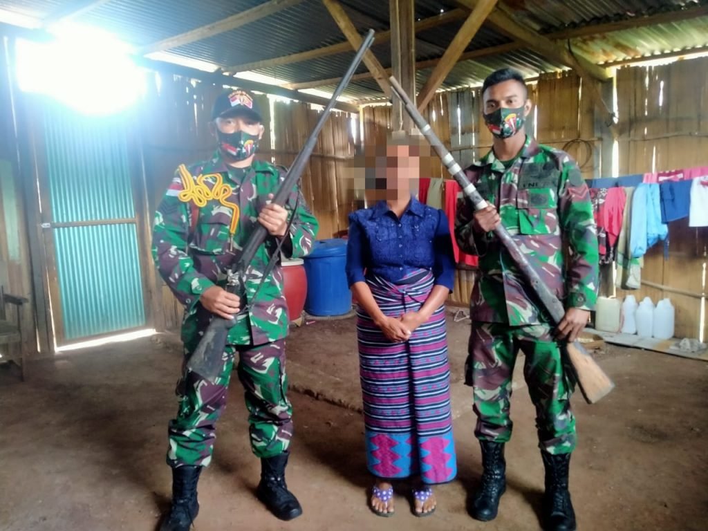 Sekitar pukul 11.00 WITA pada hari Kamis (20/05) telah dilakukan penyerahan senjata api berjenis senapan tumbuk secara sukarela oleh warga desa Eban a.n Ibu Y (55) kepada anggota Mako Satgas Yonarmed 6/3 Kostrad.