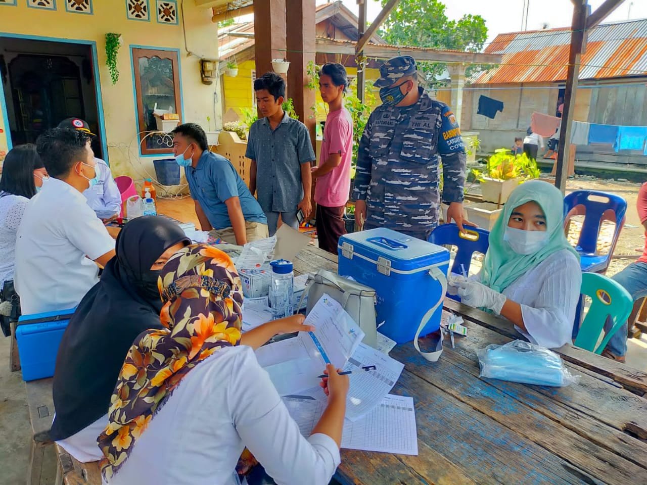 Babinpotmar Posal Tanjung Tiram Kopda Mawardi dampingi 20 orang Vaksin Sinovac di Kantor Desa Bogak Tanjung Tiram.