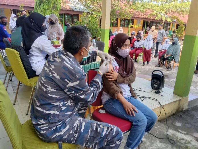 Dukung Program Pembelajaran Tatap Muka, Lanal Dumai Laksanakan Vaksinasi Covid-19 Anak Usia 6-11 Tahun