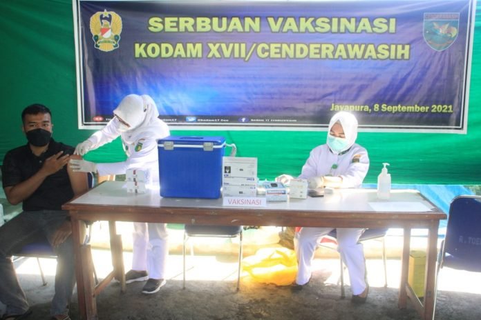 ACTUALNEWS.ID, Papua – Dalam rangka mendukung program pemerintah, Kodam XVII/Cenderawasih terus gencarkan serbuan vaksinasi Covid-19 di semua wilayah Provinsi Papua.