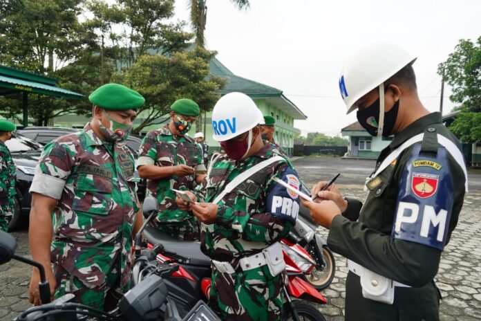 ACTUALNEWS.ID, Banyumas – Guna untuk mengeliminir, mencegah dan mengantisipasi pelanggaran prajurit dan PNS nya, Korem 071/Wijayakusuma menggelar pengecekan kelengkapan administrasi kendaraan prajurit, Senin (14/3/2022) di Lapangan Apel Makorem 071/Wijayakusuma Sokaraja, Banyumas.