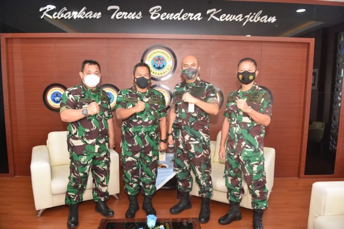 ACTUALNEWS.ID, Belawan – Komandan Pangkalan Utama TNI Angkatan Laut (Lantamal) I Laksamana Pertama TNI Achmad Wibisono menerima dan menyambut kunjungan kerja Komandan Pangkalan Udara TNI Angkatan Udara Soewondo Kolonel Pnb J.H. Ginting, di ruang VIP Mako Lantamal I Markas Komando Lantamal I Jalan Serma Hanafiah Belawan, Kamis (20/01/2022).