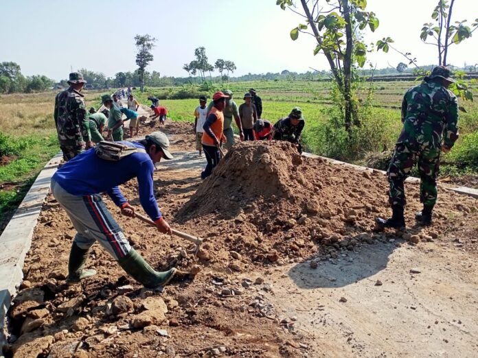 ACTUALNEWS.ID, Sukoharjo (23/08/22) Satgas TNI Manunggal Membangun Desa (TMMD) Sengkuyung Tahap II Kodim 0726/ Sukoharjodi Desa Jengglengan, Kec. Nguter Kabupaten Sukoharjo, bersama dengan warga masyarakat bahu-membahu mengerjakan pengurugan bahu jalan di dukuh Ngandong, Selasa (23/08/22).