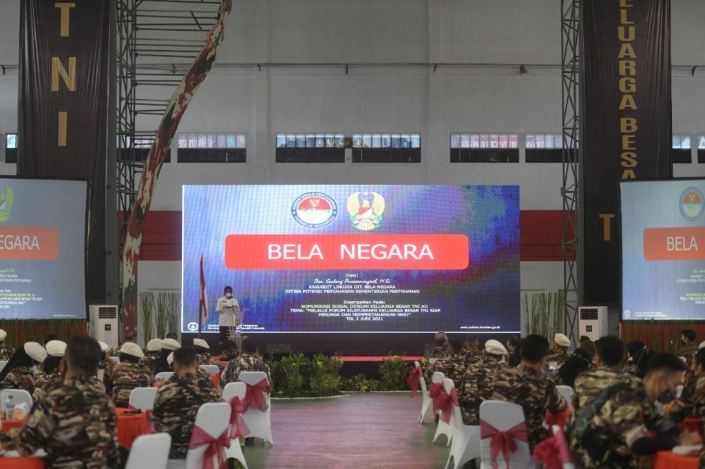 ACTUALNEWS.ID, Jakarta – Staf Teritorial Angkatan Darat (Sterad) menggelar kegiatan Komunikasi Sosial (Komsos) dengan Keluarga Besar TNI (KBT) dari Forum Komunikasi Putra-Putri Purnawirawan Indonesia (FKPPI) bertempat di GOR Nanggala, Cijantung, Jakarta Timur, Rabu (2/6/2021).