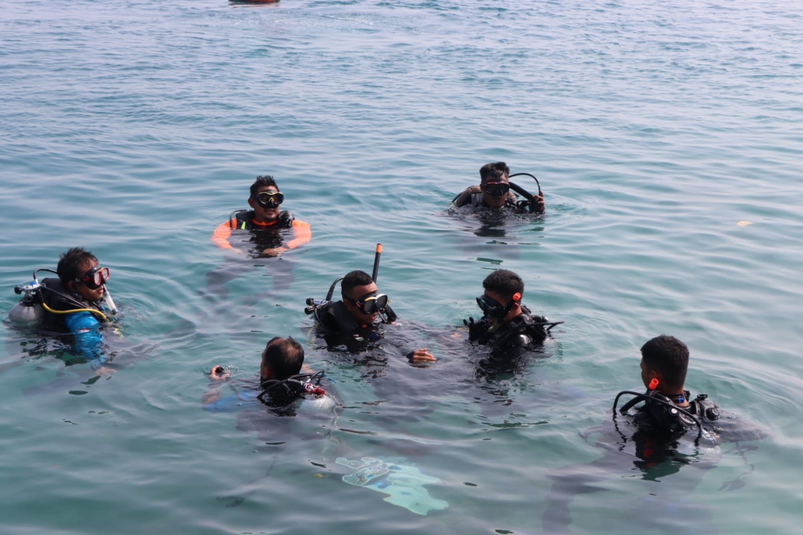 Budi menambahkan, adapun materi pelatihan yang dilaksanakan diantaranya adalah pengenalan alat selam, cara memasang alat selam, water trappen (bertahan diatas air), renang dan praktek selam di Perairan Pulau Pramuka Kecamatan Kepulauan Seribu Utara.
