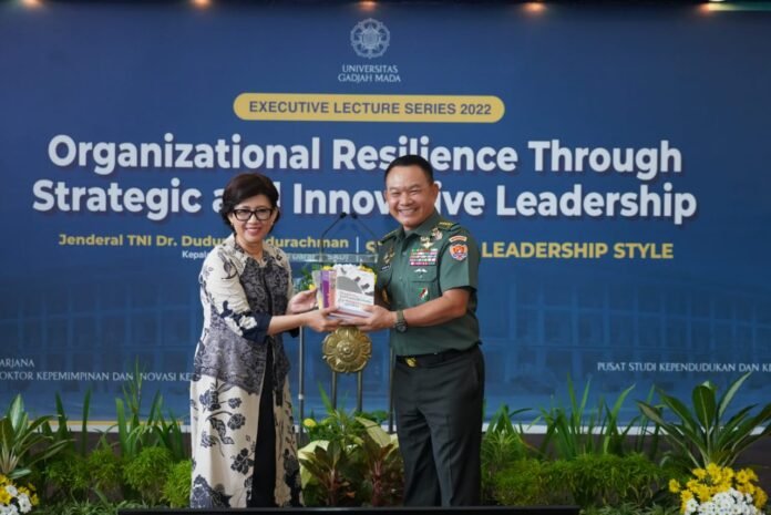Sementara itu, Rektor UGM Prof. dr. Ova Emilia, M.Med., Ed., Sp.OG (K), Ph.D, dan Dekan Sekolah Pascasarjana UGM Prof. Ir. Siti Malkhamah, M.Sc., Ph.D menyampaikan penghargaan dan ucapan terima kasih yang sebesar-besarnya kepada Jenderal Dudung yang bersedia memberikan kuliah umum tentang kepemimpinan strategis kepada para mahasiswa UGM. Keduanya pun berharap pengalaman dan pemikiran yang dibagikan Jenderal Dudung ini dapat menjadi bekal pengetahuan serta inspirasi jika kelak para mahasiswa ini menjadi pemimpin.