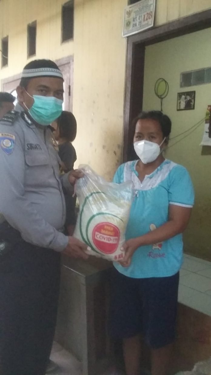 Pembagian di berikan kepada 4 warga Desa Rawa Panjang dan 2 warga Kelurahan Pabuaran, sebanyak 30 kg yang masing-masing warga menerima 5kg beras.