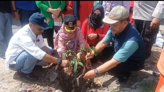 Plt Camat Tambora Agus Sulaiman, Sekcam Hj. Nurul Gusti Sahara Ayu MSi turut menanam pohon bersama Zainudin S.pd, M.A.P lurah Jembes, Agus Rendi Ketua RW 02.