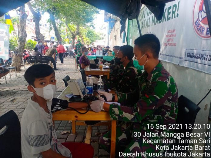 ACTUALNEWS.ID, Jakarta Barat – Komando Distrik Milter (Kodim) 0503/Jakarta Barat gencar laksanakan kegiatan serbuan Vaksinasi Covid-19 yang dilaksanakan Komando Rayon Militer (Koramil) 01/Tamansari. Kamis, (16/9).