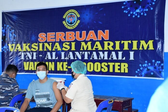 ACTUALNEWS.ID, Belawan – Guna memutus rantai penyebaran Virus Covid 19, Pangkalan Utama TNI Angkatan Laut (Lantamal) I tidak henti-hentinya terus menggelar pelaksanaan vaksinasi booster bagi keluarga besar TNI Angkatan Laut yang kali ini menyasar masyarakat Komplek Perumahan TNI Angkatan Laut Titi Papan di Kecamatan Medan Deli, Kota Medan, Selasa (15/02/2022).