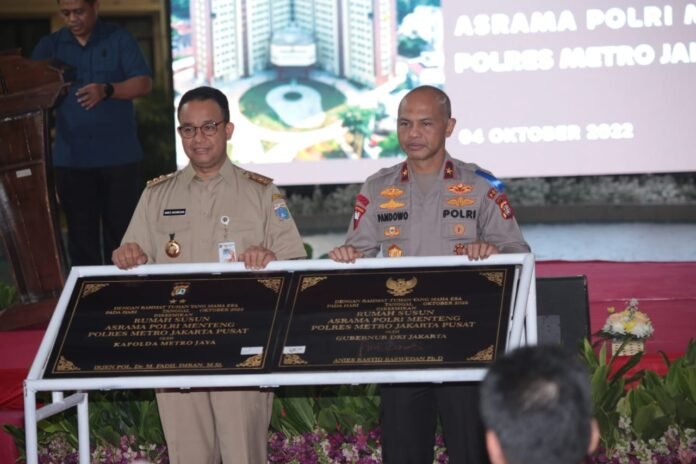 ACTUALNEWS.ID, Jakarta – Brigjen. Pol. Drs. Hendro Pandowo, M.Si. Wakapolda Metro Jaya bersama dengan Bpk. H. Anies Rasyid Baswedan, S.E., M.P.P., Ph.D. Gubernur DKI Jakarta meresmikan Rumah Susun Polri Menteng Jakarta Pusat. Selasa (4/10/2022).
