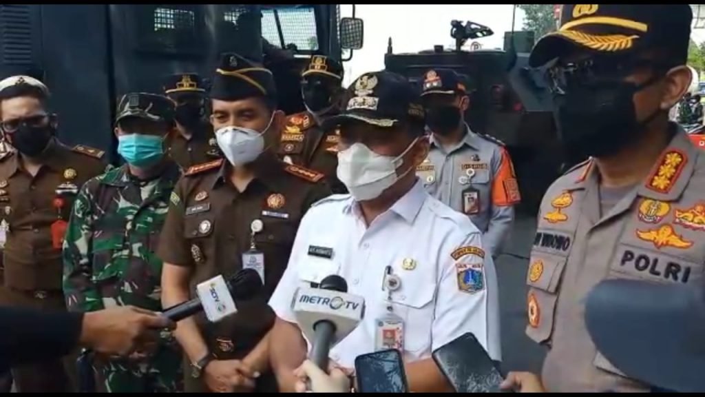 Dalam kesempatannya Gubernur DKI Jakarta terlihat bersama jajarannya memastikan secara langsung Penyekatan berjalan dengan baik.