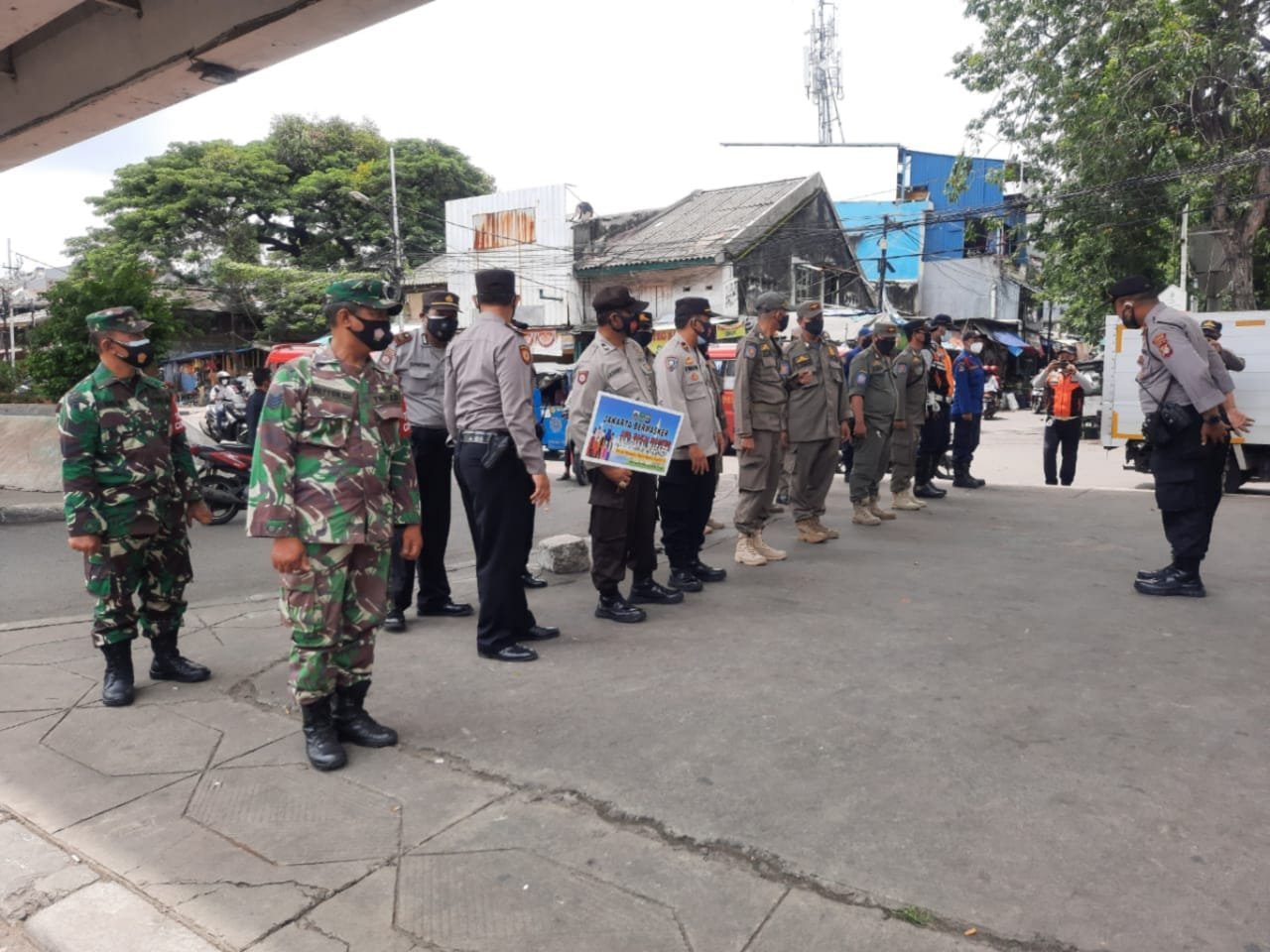 ACTUALNEWS.ID, Jakarta- Babinsa Koramil 02/TB bersama Polsek Tambora, Satpol PP, Dishub dan Damkar usai apel kesiapan dipimpin Kanit Patroli Iptu Sudargo menggelar operasi yustisi dalam rangka penegakan disipilin Protokol kesehatan.