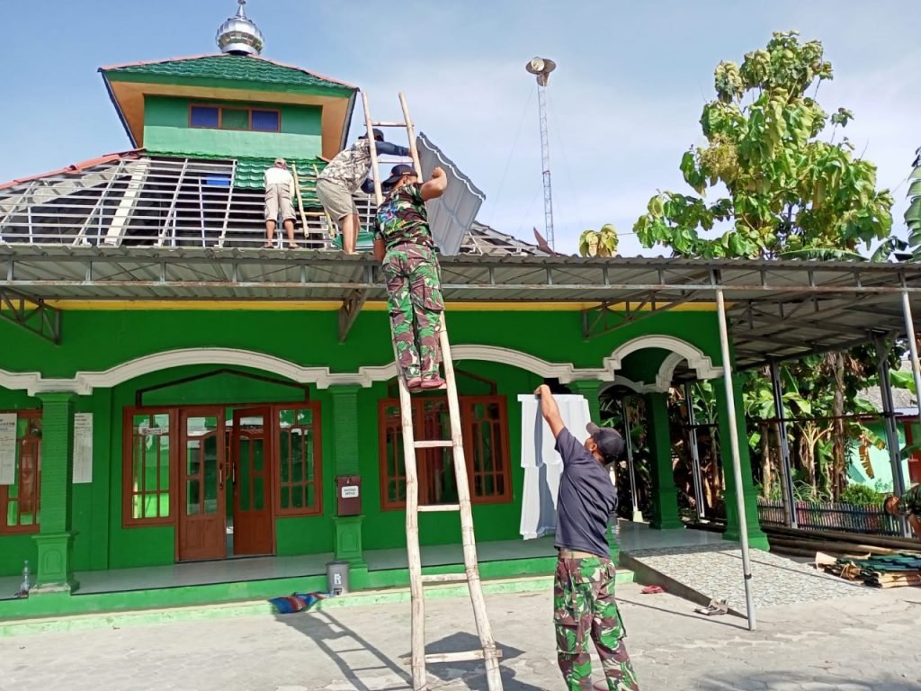 “Hari ini kita fokus melaksanakan pemasangan genteng, kalau sudah selesai baru merambah ke penggantian plafon, dengan digantinya genteng ini dengan material baru, mudah-mudahan akan semakin tahan lama dan membuat ibadah semakin nyaman,” tukas Babinsa Serda Yulianto.