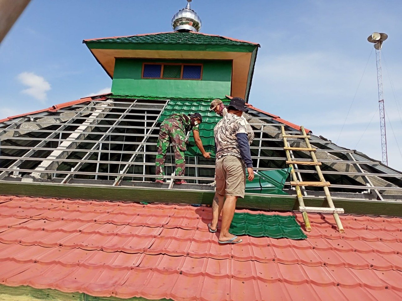 “Hari ini kita fokus melaksanakan pemasangan genteng, kalau sudah selesai baru merambah ke penggantian plafon, dengan digantinya genteng ini dengan material baru, mudah-mudahan akan semakin tahan lama dan membuat ibadah semakin nyaman,” tukas Babinsa Serda Yulianto.