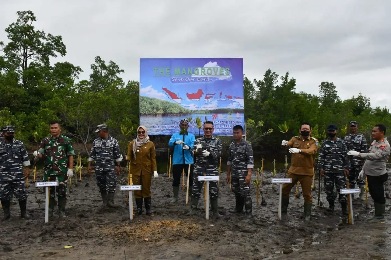 ACTUALNEWS.ID, Sibolga,- Dengan semangat Hari Mangrove Sedunia yang jatuh pada tanggal 26 Juli 2022, Pangkalan TNI AL Sibolga bersama 77 wilayah di Indonesia melaksanakan program penanaman mangrove serentak yang dipimpin langsung oleh Kepala Staf Angkatan Laut (Kasal) Laksamana TNI Yudo Margono, S.E., M.M., yang juga dihadiri oleh Menteri Lingkungan Hidup dan Kehutanan Dr. Ir. Siti Nurbaya, M.Sc., dan beberapa duta negara sahabat di Tanjung Pasir Tangerang Banten, Selasa (26/07/2022).