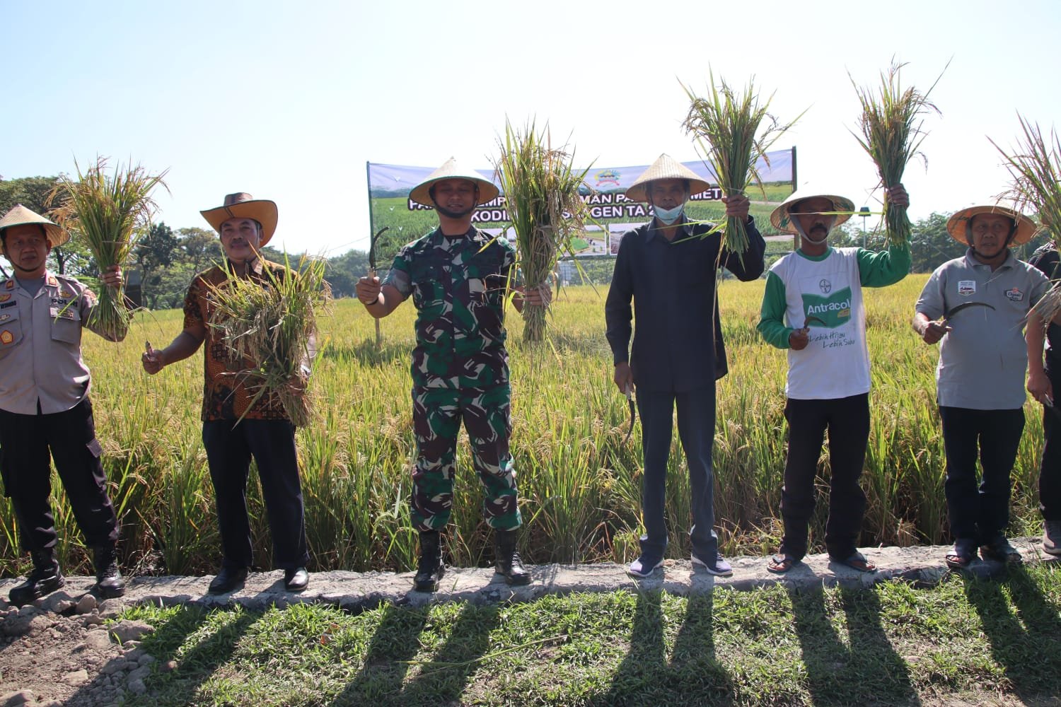 Mengakhiri sambutannya Letkol Yoga mengucapkan terimakasih kepada semua pihak yang telah membantu dalam pelaksanaan demplot ketahanan pangan Kodim Sragen. Dilanjutkan pemotongan padi secara simbolis oleh Dandim, Camat Masaran, Kapolsek, Tokoh Masyarakat Dawungan dan Pemilik lahan.