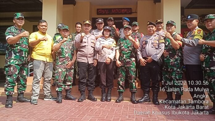 ACTUALNEWS.ID, Kodam Jaya Jakarta -Anggota Koramil-02/TB Kodim 0503/JB yang dipimpin Serma Agus Wakhid kunjungi Mapolsek Tambora di Jl. Pangeran Tubagus Angke No.30 RT.05 RW.09 Kel. Angke Kec. Tambora, Jakarta Barat.Jumat (1/7)
