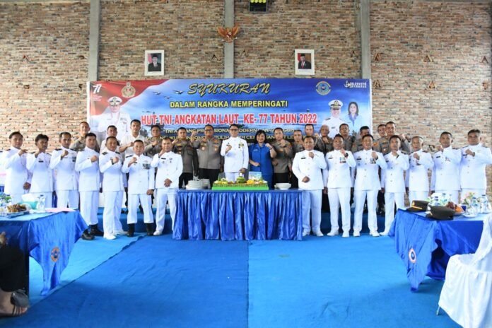 ACTUALNEWS.ID, Tanjung Balai, 12 September 2022,– Pada Peringatan Hari Ulang Tahun (HUT) TNI AL Ke-77 tahun ini mendapat perhatian sejumlah pihak, diantaranya Walikota Tanjungbalai H. Waris Thalib, Kapolres Tanjungbalai, Kapolres Asahan, Ketua Pengadilan Negeri Tanjungbalai, Kejari Tanjungbalai, Kejari Asahan, Dandim 0208/AS dan Bank BRI Tanjungbalai tidak ketinggalan Ketua Cabang 7 Korcab I DJA I beserta pengurus turut memberikan surprise kepada Danlanal memberikan Kue tar sebagai ucapan Hari Ulang Tahun TNI AL Ke-77.