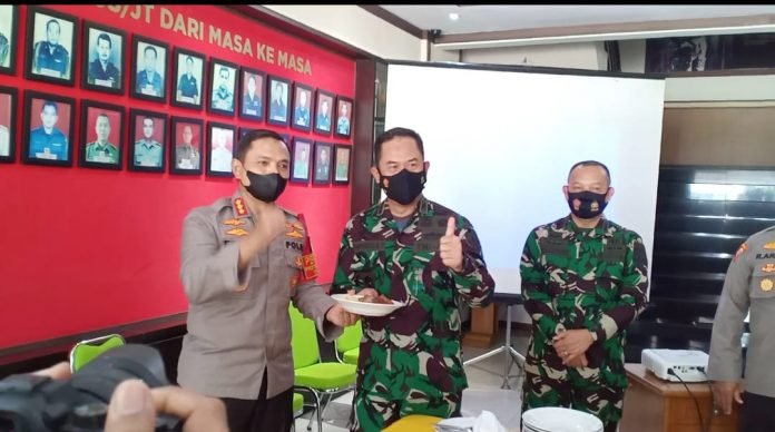 ACTUALNEWS.ID, Kodam Jaya, Jakarta Timur – Di hari jadinya Tentara Nasional Indonesia (TNI) yang ke 76, di pimpin Kapolres Metro Jakarta Timur Kombes Pol Erwin Kurniawan Sik. SH Hum bersama Waka Polres dan rombongan, memberikan Surprise ucapan selamat HUT TNI yang ke 76 dengan memberikan Tumpeng dan kue Ulang Tahun di Makodim 0505/JT, Selasa (05/10/2021).