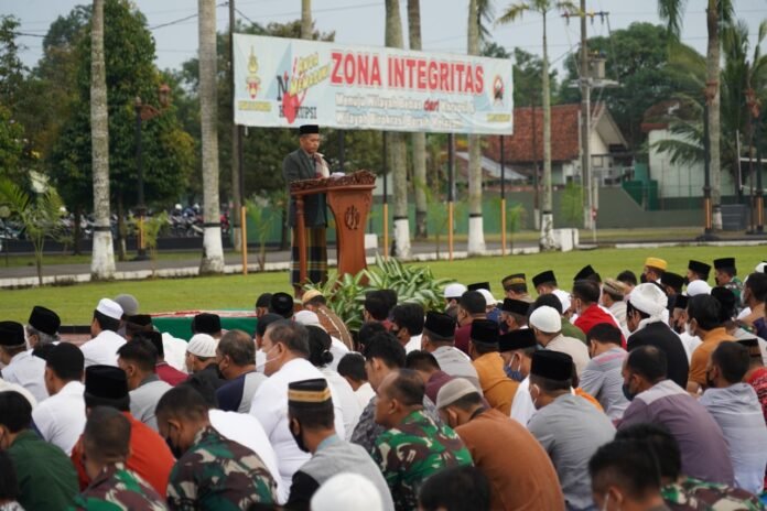 Selaku Imam dan Khotib Sholat Idul Adha 1443 H/2022 M, Ustad Sertu Dzamzam Nurjanto dari Bintalrem 071/Wijayakusuma.