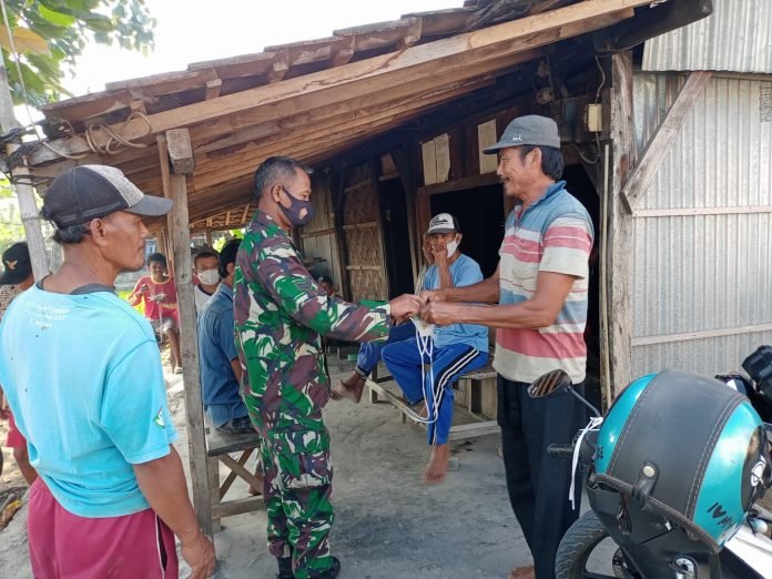 Ingatkan Patuhi Prokes Babinsa Koramil 20/Plupuh Bagikan Masker