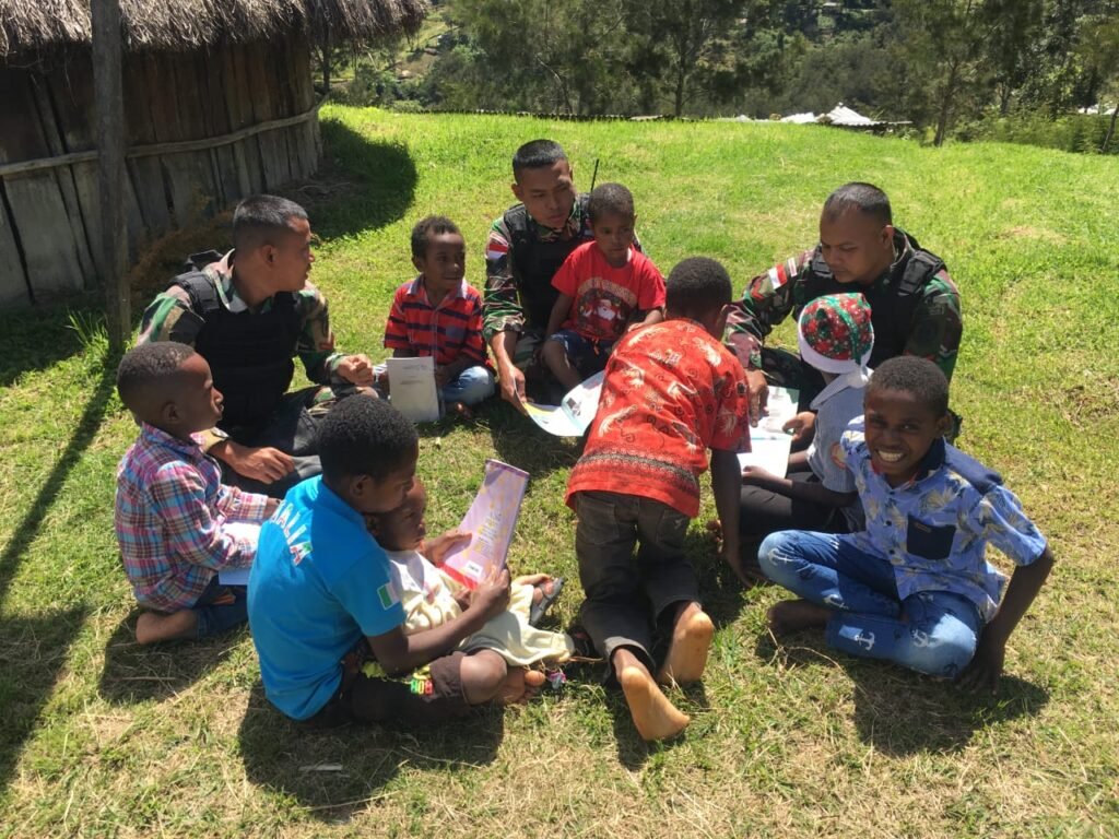 ACTUALNEWS.ID, Papua – Kehadiran Prajurit Satgas Yonif MR 412 Kostrad dari Pos Pirime selalu dinantikan dengan suka cita oleh anak-anak di Kampung Bugumbak Distrik Pirime Kabupaten Lanny Jaya Papua, bukan tanpa alasan karena dalam setiap kesempatan Anggota Pos Pirime selalu memberikan hal-hal yang menarik simpati dan perhatian anak-anak.