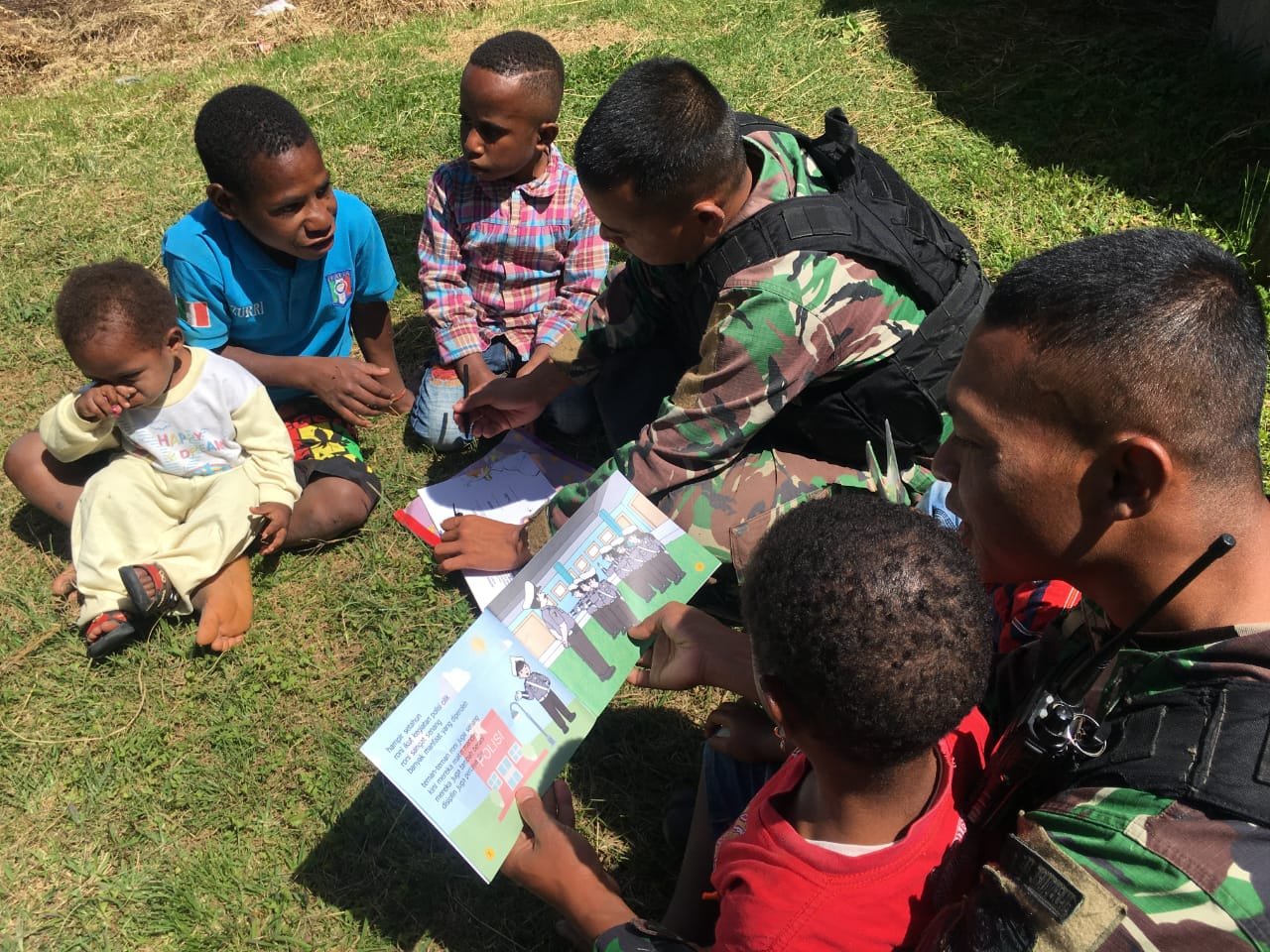 “Abang tentara baik, suka ajak kita main sambil belajar membaca”, jelas Alwen Tabuni