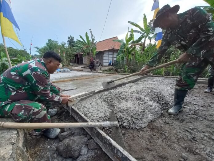 ACTUALNEWS.ID, Boyolali – Warga dan Satgas TNI Manunggal Membangun Desa (TMMD) terlihat sibuk mengerjakan pembangunan jalan rabat beton ini sepanjang 1.526 m memang membutuhkan pengerjaan yang sangat ekstra untuk menyelesaikannya. Sehingga dalam hal ini azas gotong royong antara Satgas TMMD dan warga harus lebih dikedepankan supaya diperoleh hasil yang maksimal.