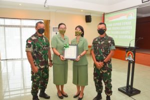 Setelah pelaksanaan sertijab dilaksanakan kegiatan ramah tamah dan pemberian cenderamata oleh Danrem 172/PWY didampingi Ketua Persit Koorcab Rem 172 kepada pejabat lama. (Sumber Penrem 172/PWY)