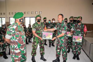 Di akhir pengarahannya Bapak Kasdam III/Slw Brigjen TNI Darmono Susastro, yang didampingi Danrem 062/TN, Dandim 0612/Tsm, Kasiter Korem 062/TN, Wakapendam III/Slw dan Pabandya Bakti Sterdam III/Slw, menyerahkan bingkisan kepada anggota Babinsa Kodim 0612/Tsm, tukasnya. (Pendam III/Siliwangi).