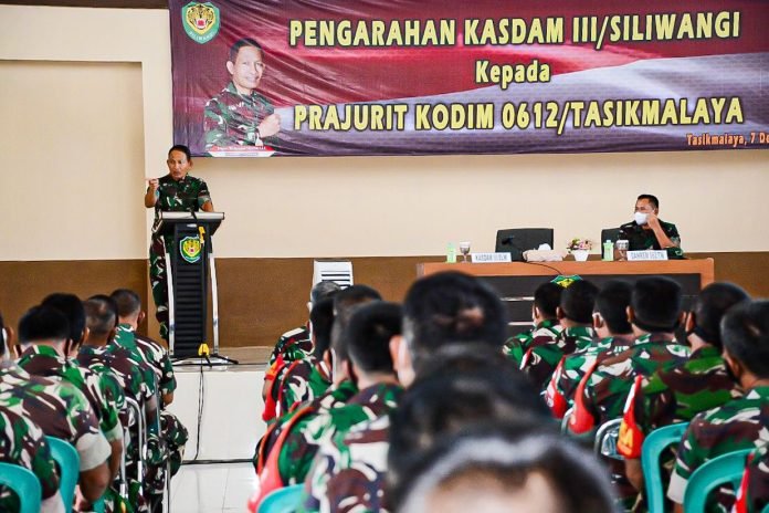 ACTUALNEWS.ID, Tasikmalaya – Komando Daerah Militer (Kodam) selain pembinaan teritorial juga melaksanakan pembinaan satuan, salah satunya memberikan arahan kepada satuan bawah. Seperti yang dilakukan Kasdam III/Slw Brigjen TNI Darmono Susatro, S.I.P, memberikan pengarahan kepada personel Kodim 0612/Tasikmalaya, berlangsung di Gedung Juang 45, Jln. TMP Kel. Cikalang, Kec. Tawang Kota Tasikmalaya.