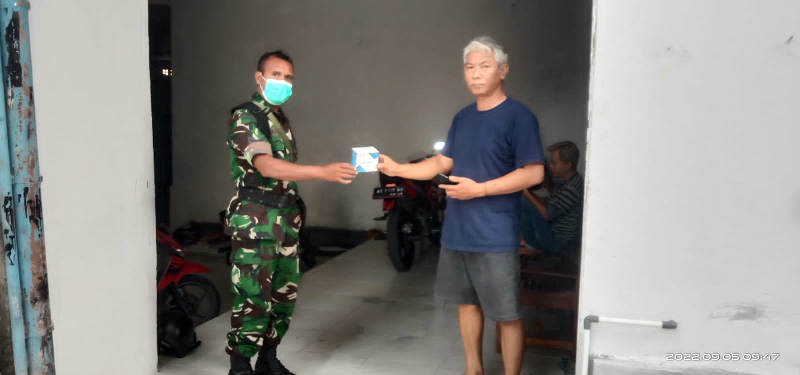 ACTUALNEWS.ID, Surakarta, Di tengah Pandemi COVID-19 Babinsa Kel. Serengan Koramil 03/Serengan Kodim 0735 Surakarta Sertu E Lau We membagikan obat dan vitamin (Obat Paket 1) ke warganya an Nilam Cahaya Nugroho untuk meningkatkan kesehatan dan daya tahan tubuhnya.