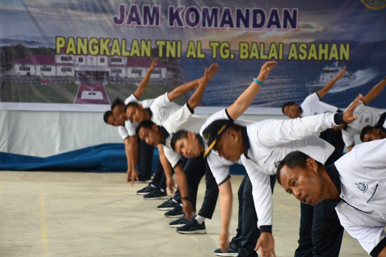 ACTUALNEWS ID, Tanjung Balai,- Komandan Lanal Tanjung Balai Asahan olahraga bersama Prajurit dengan senam SKJ 88, semula dilaksankan dilapangan apel, dikarenakan hujan senam SKJ 88 dilaksankan di Gedung Serba Guna Mako Lanal Tanjung Balai Asahan, Jumat (2/09/2022).