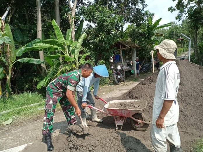 ACTUALNEWS.ID, Boyolali– Kebersamaan dan kedekatan Babinsa bersama masyarakat di wilayah binaannya, ditunjukan oleh Sertu Suyamto Babinsa Koramil 04/Teras kodim 0724/Boyolali, bersama masyarakat Binaanya Desa Kediren, dalam melaksanakan kerja bakti pengecoran jalan Desa Tawangsari di Dukuh Sukorejo Desa Tawangsari Kecamatan Teras Kabupaten Boyolali. Senin ( 9/1/23)