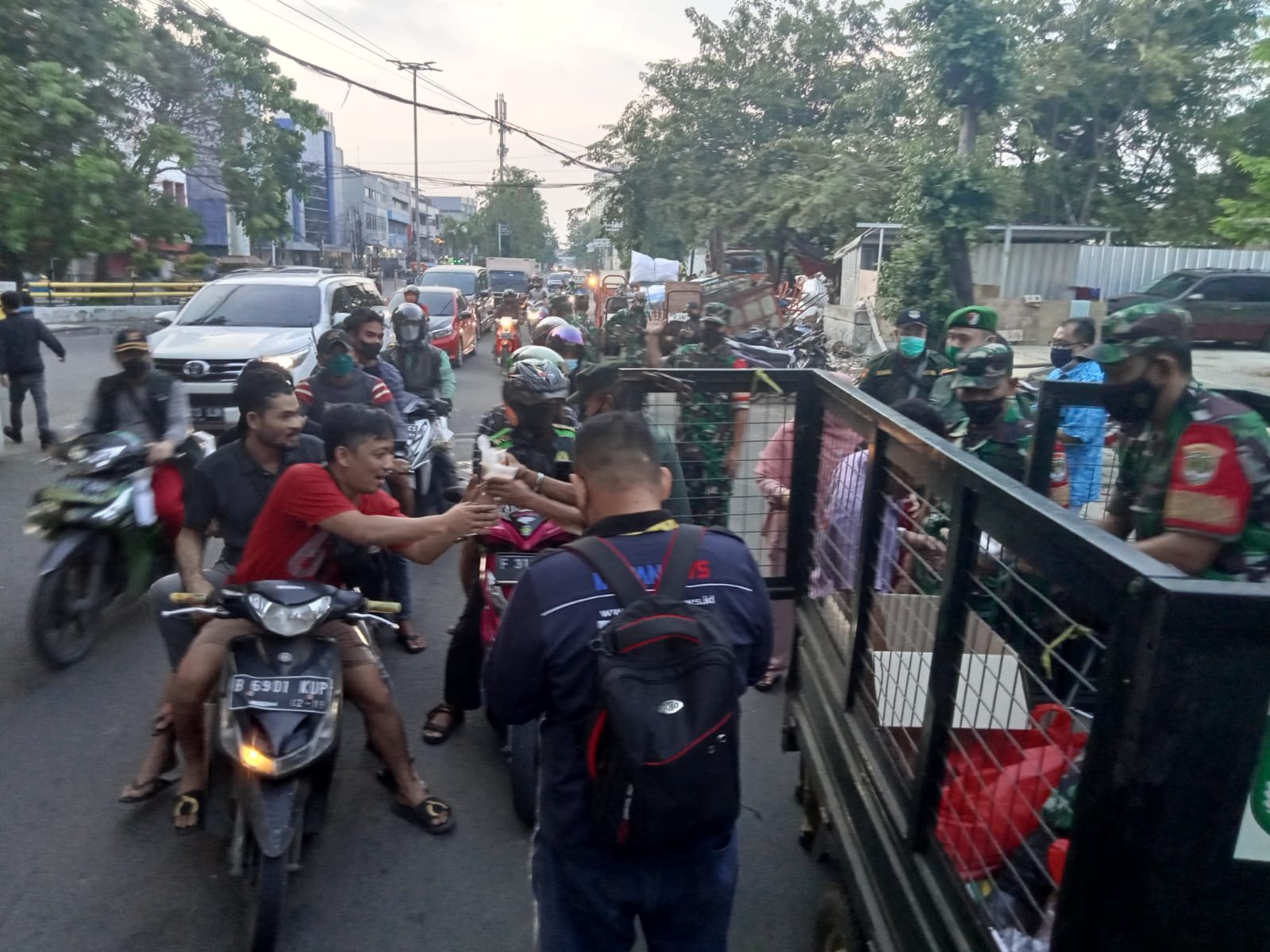 ACTULANEWS.ID, Jakarta – Menjelang berbuka puasa Koramil 02/TB Kodim 0503/JB membagikan takjil kepada masyarakat yang menjalankan ibadah puasa di bulan suci Ramadhan untuk berbuka puasa