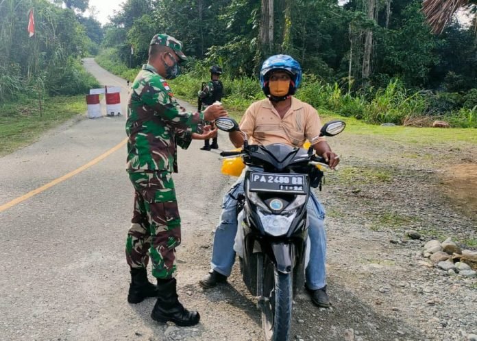 ACTUALNEWS.ID, Papua – Menjelang HUT ke 76 – RI yang diperingati tanggal 17 Agustus 2021, Pos Kalilapar Satgas Pamtas RI-PNG Yonif Mekanis 512/QY membagikan makanan bergizi berupa bubur kacang hijau kepada masyarakat yang melintas di depan Pos Kalilapar Distrik Waris, Kabupaten Keerom Papua, Senin (16/08/2021).